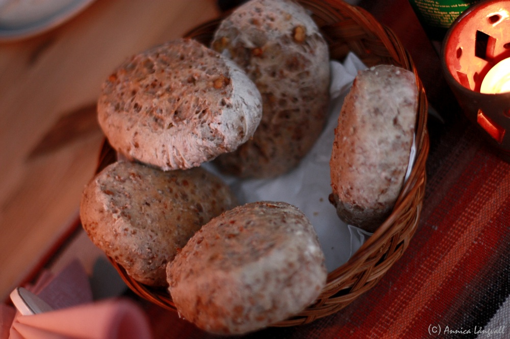 En helgfrukost med familj i Rossön, vad kan vara bättre? Kaffet smakar extra gott, nybakade grötbullar står på bordet, allt är upplagt i charmiga kärl och skålar. Jag och älskligen anlände sent igår kväll och hade lyxen att bli bjudna på något så lyxigt som baconlindad strutsfilé med grönsaker och pressad potatis.