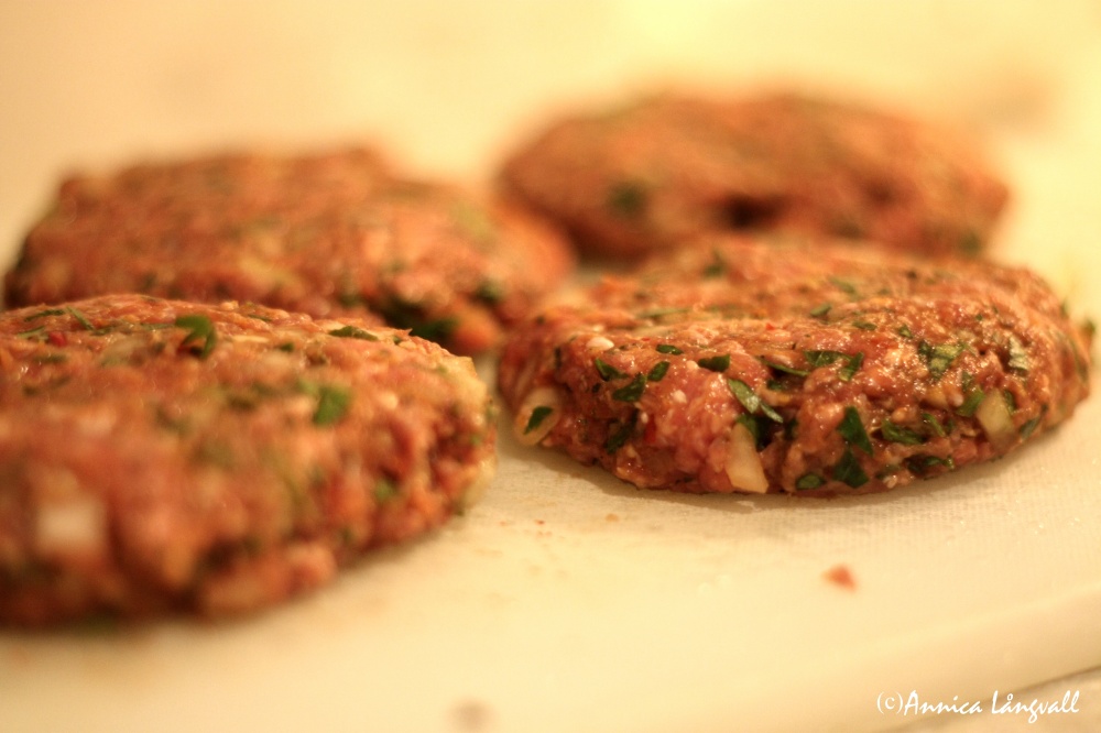 De här biffarna går såklart att göra av nötkött också, men lammfärsen gifter sig med kryddorna och ger en helt annorlunda smak enligt mig, en extra dimension.