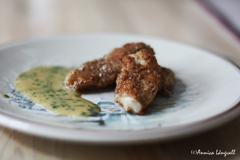 Ja, jag erkänner. Jag provade att göra en sås lite snabbt, det blev inte alls bra. Jag råkade bryna smöret så att såsen smakade typ som knäck. Vi åt inte detta till middag utan bara som en liten provsmakning, så jag lade inte så mycket eftertanke i själva tillagningen… Tur det, knäckemackan blev god!