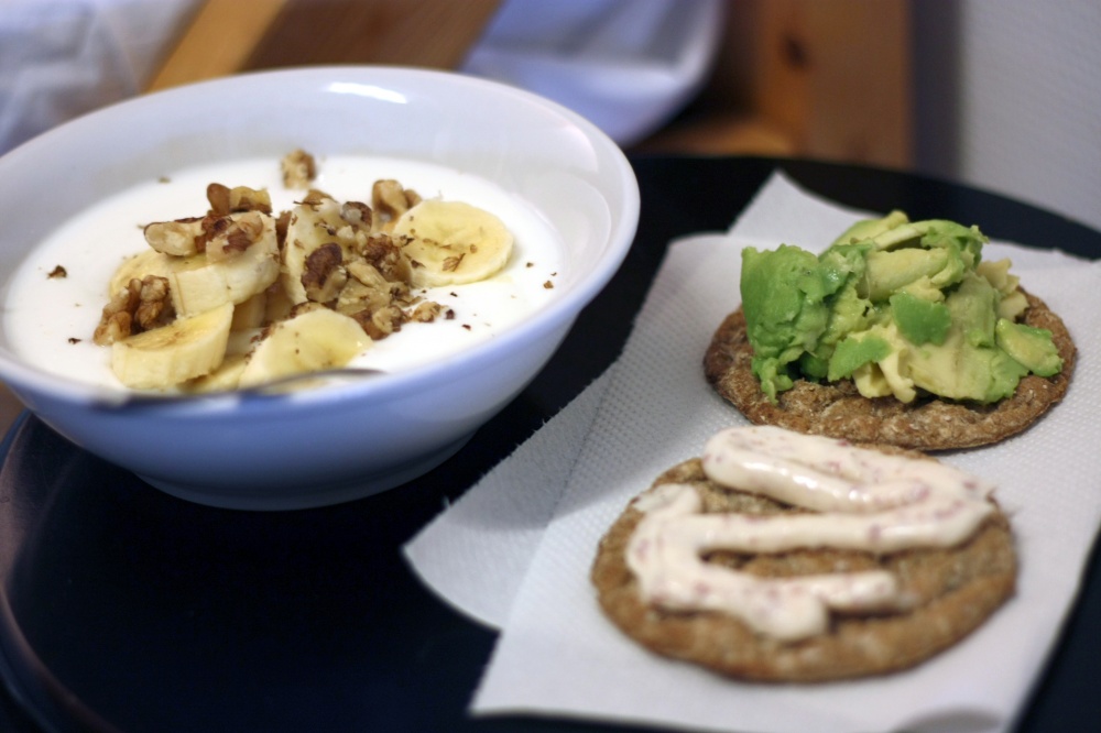 Så nu vet ni vad de senaste dagarnas bloggtorka har berott på. Jag lovar att dela med mig till er av alla nya smaker och matäventyr från Jämtland! Nu ikväll bjuder jag på nödmat från ett vandrarhem: frukt, nötter, avokado, grovknäcke, yoghurt och kaffe är en bra början. Nu ska jag cykla ut och se på min nya hemstad!!!