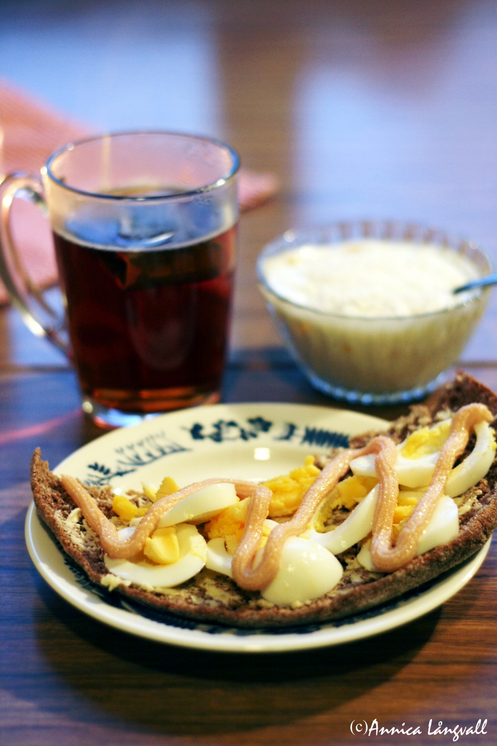 Jag började min morgon med en rallarhalva med ägg och kaviar, frusen mango som jag tinat lite snabbt i mikron tillsammas med laktosfri naturell yoghurt toppat med kokosflingor, och så en riktigt god kopp te, Indian spice. Det smakade bra i värmen från dubbla täcken i en annars ganska kall studentlägenhet i ett kyligt Östersund.