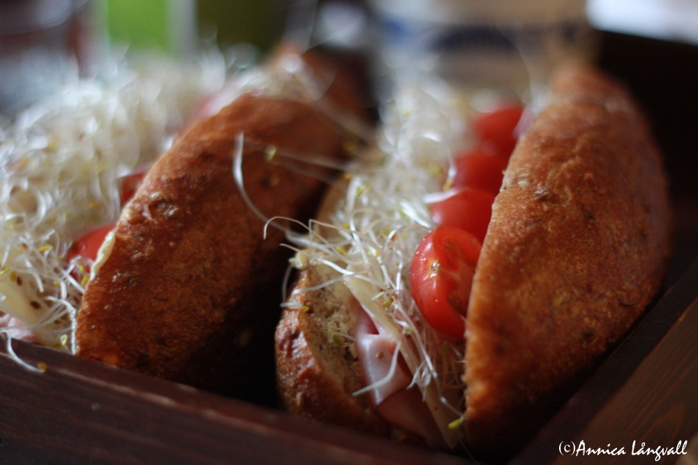 Så började dagen med frukost i sängen: surdegsbaguetter med skinka, ost, körsbärstomater, färska groddar, ett glas blåbärsjuice, ägg med kaviar, och så kaffe. Mättande, lyxigt, laddande, tokmysigt. Sedan for vi till Jamtli och kollade på filmer om renslakt, sedan in på stan och satte oss på ett konditori och njöt av gott fika och gott sällskap.