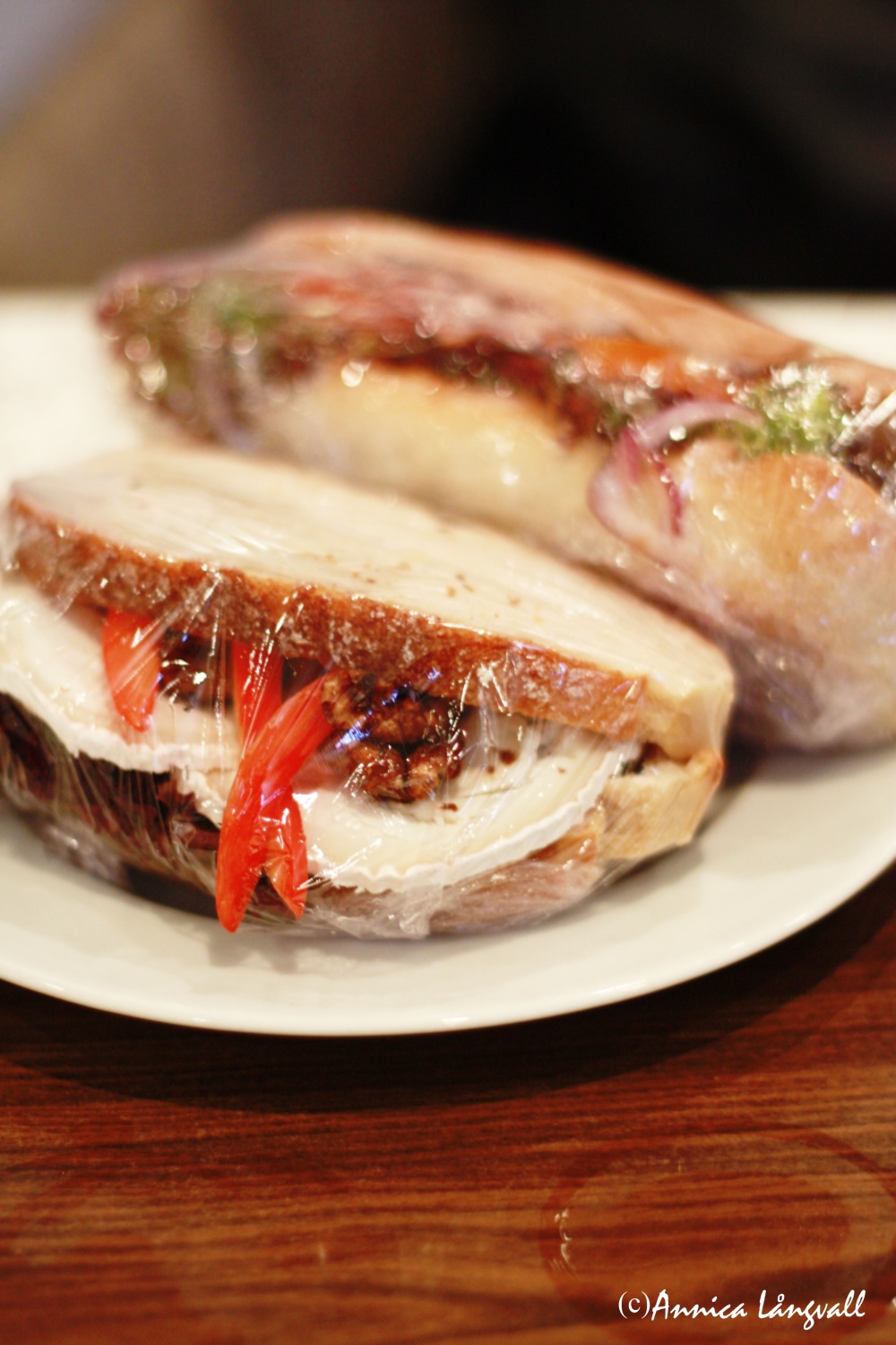 Jag åt en macka med chèvre, valnötter och honung. En solklar kombination som alltid fungerar. Micke åt en club sandwish som trots sina lite för stora kycklingbitar var riktigt god.