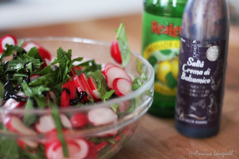 Servera rätten med ris och en god råkostsallad med t ex vitkål, morot, äpple, eller kanske en rädissallad med rädisblad, ruccola, dressad med citronsaft och crema di balsamico?