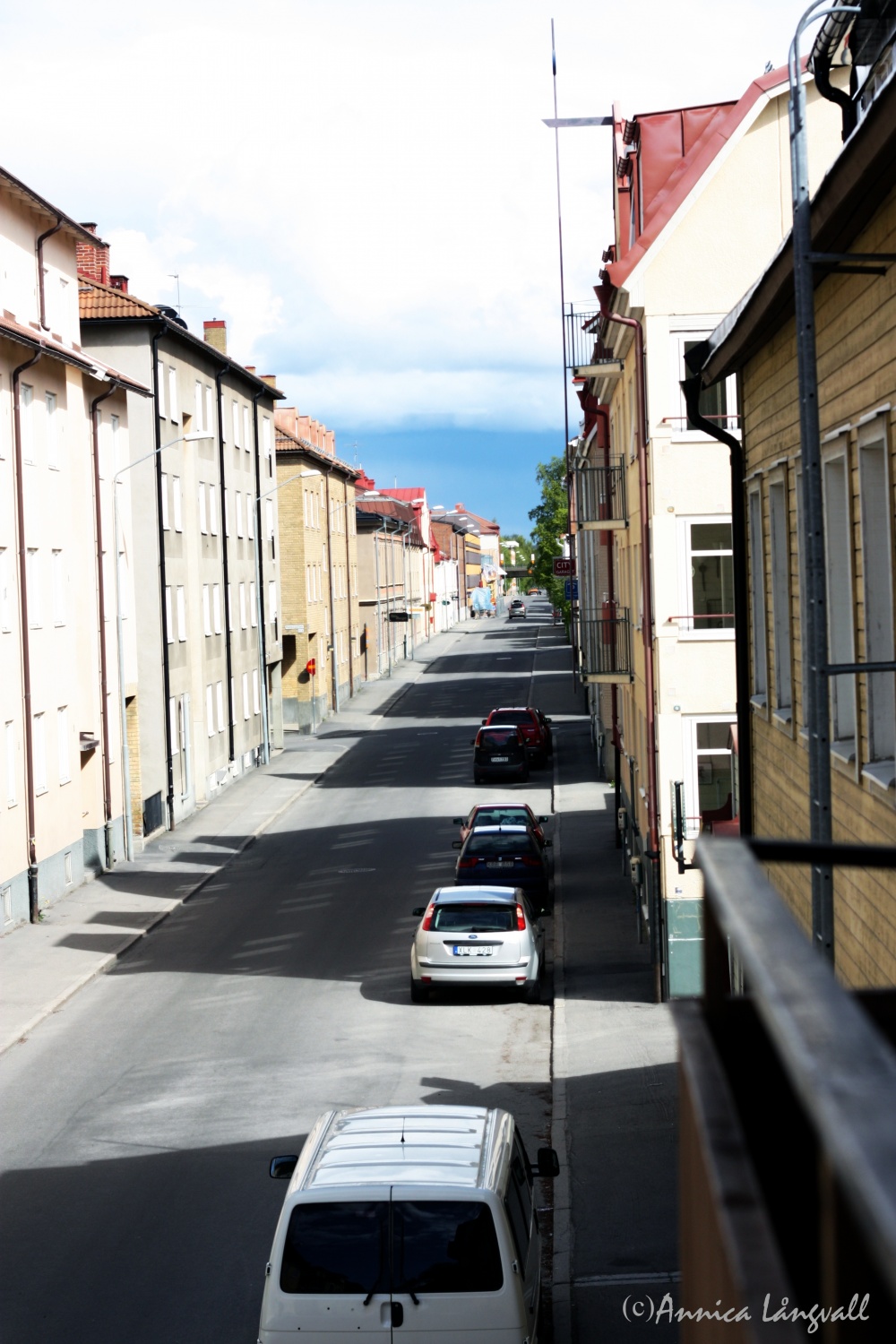 Här ser ni utsikten från vår balkong mitt inne i Östersund. Det är första gången jag bor såhär centralt. Jag kommer ju från Bygdom utanför Örnsköldsvik, en av världens vackraste byar, där vinden skapar illusioner om vågor över det långa gräset på åkrarna om sommaren och där inte så mycket som en kiosk finns inom synhåll. Det är ganska trevligt att prova på att bo såhär centralt. Närheten till caféer, restauranger, matbutiker – och gymmet som ligger runt hörnet – gör det enkelt att utan planering gå in på stan och ta en kaffe eller träffa vänner på en restaurang. Ca 50 meter från min dörr ligger en delikatessbutik där de säljer fina oljor, balsamvinäger, fika m.m.