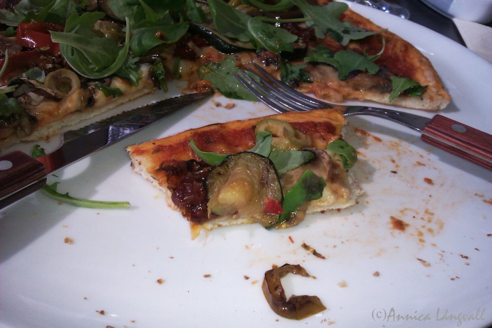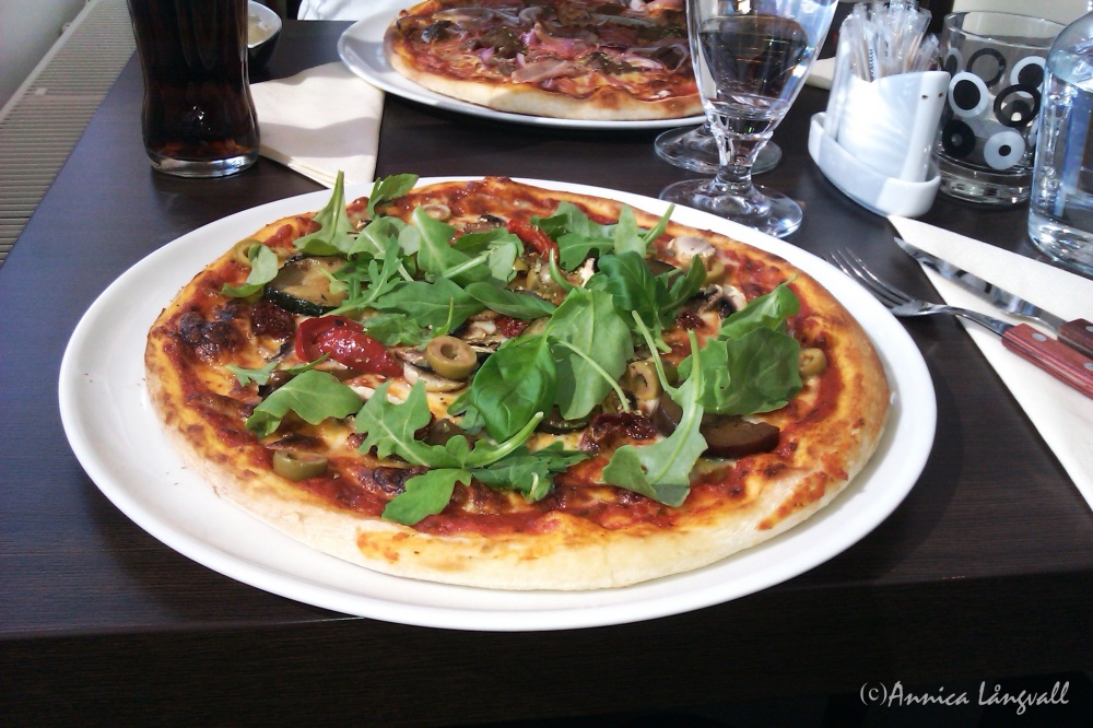 En av mina favoritrestauranger i Örnsköldsvik råkar vara Il Romanos, en restaurang med fokus på stenugnsbakad pizza men som även serverar andra maträtter. På denna restaurang kan man få en helt underbar laktovegetarisk pizza, Ortolana, med grönsaker och färska basilikablad. Det blir inte bara gott, det blir vackert för ögat också. Jag kan verkligen rekommendera er att besöka Il Romanos på sjögatan i Örnsköldsvik. Förutom en god pizzasallad och underbart fräscha stenugnsbakade pizzor som inte dryper av fett som pizzorna gör på många andra ställen, så får man alltid ett trevligt bemötande, vilket jag tycker är otroligt viktigt för att det ska vara trevligt att gå ut och äta. Ibland tar det en stund att få maten, så hit ska man inte gå om man har jättebråttom. Maten är dock väl värd att vänta på!