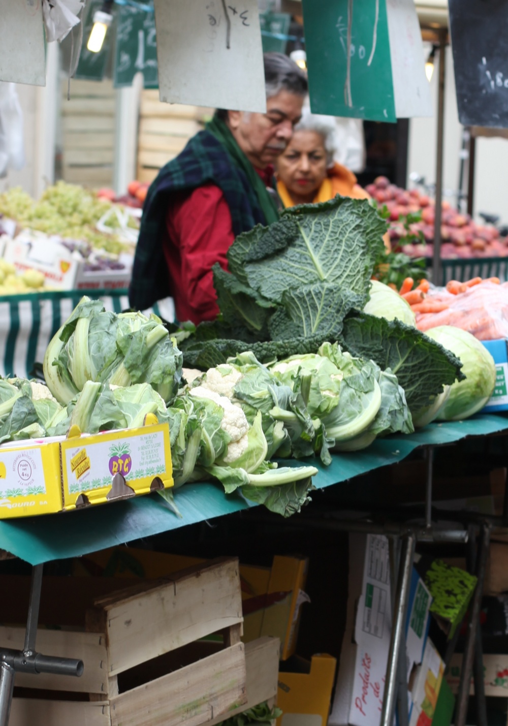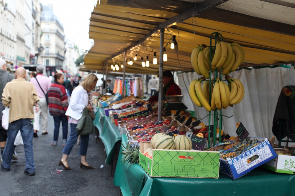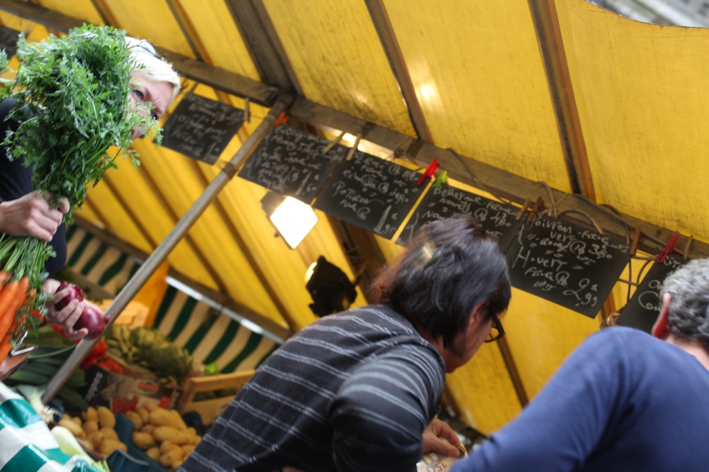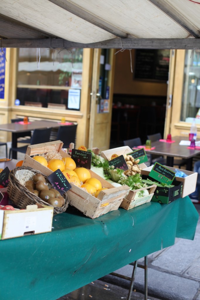 Så som jag ser det finns det två sidor av matens Paris. Å ena sidan har vi croissanter, baguetter, söta små yoghurtar, chokladpuddingar, chokladbröd och ost – med andra ord, kost som kan få magen att stå still på vem som helst. Å andra sidan har vi matmarknader som sprakar av färgglada frukter och grönsaker, skaldjur, fisk, oliver, kryddor och kött – fräsch, hälsosam mat som för mina tankar till medelhavet. Här har ni den sidan av Paris, som man hittar på de gator där lokalbefolkningen verkar strosa runt och turist-souvenirbutikerna är skönt frånvarande.