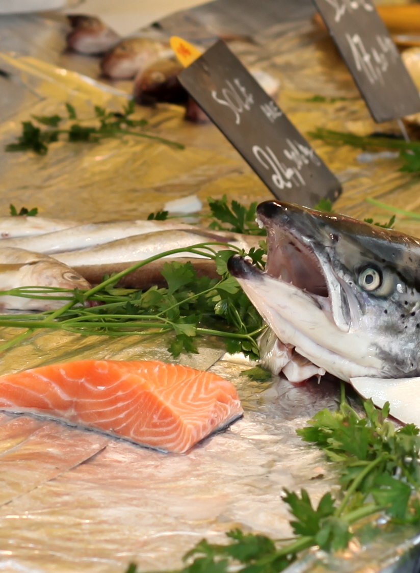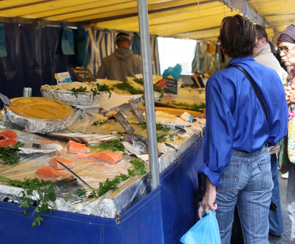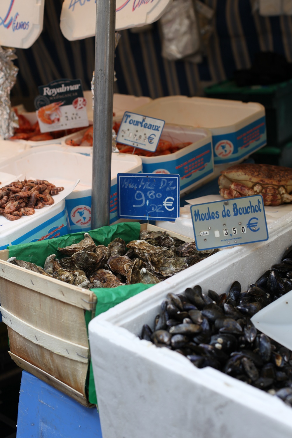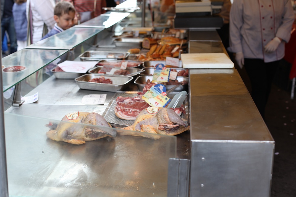 Så som jag ser det finns det två sidor av matens Paris. Å ena sidan har vi croissanter, baguetter, söta små yoghurtar, chokladpuddingar, chokladbröd och ost – med andra ord, kost som kan få magen att stå still på vem som helst. Å andra sidan har vi matmarknader som sprakar av färgglada frukter och grönsaker, skaldjur, fisk, oliver, kryddor och kött – fräsch, hälsosam mat som för mina tankar till medelhavet. Här har ni den sidan av Paris, som man hittar på de gator där lokalbefolkningen verkar strosa runt och turist-souvenirbutikerna är skönt frånvarande.
