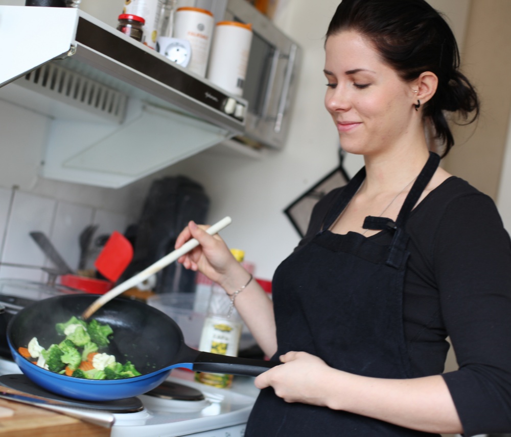 - Hetta upp rapsolja i en stekpanna. Lägg i grönsaker och lax eller kyckling i strimlor, eller för en vegetarisk variant: kikärter, quorn- eller sojabitar.