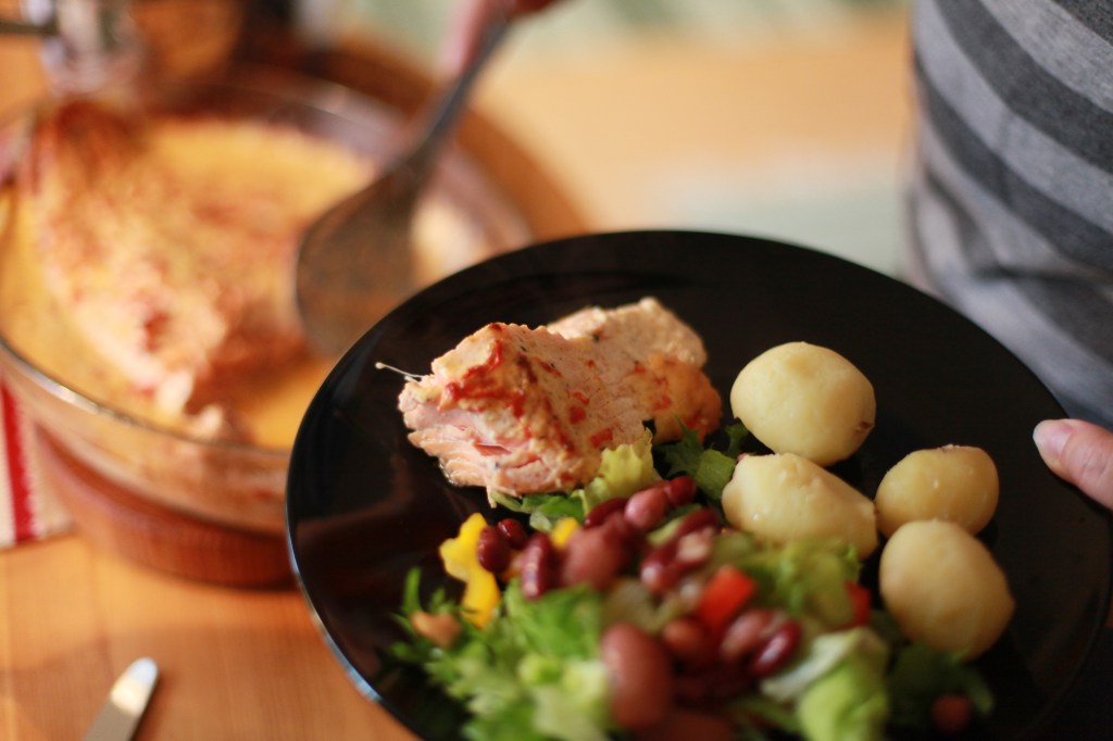 Just nu befinner jag mig i min mammas kök i en by utanför Örnsköldsvik, och doften av en lax med krämigt täcke börjar precis sprida sig i köket.