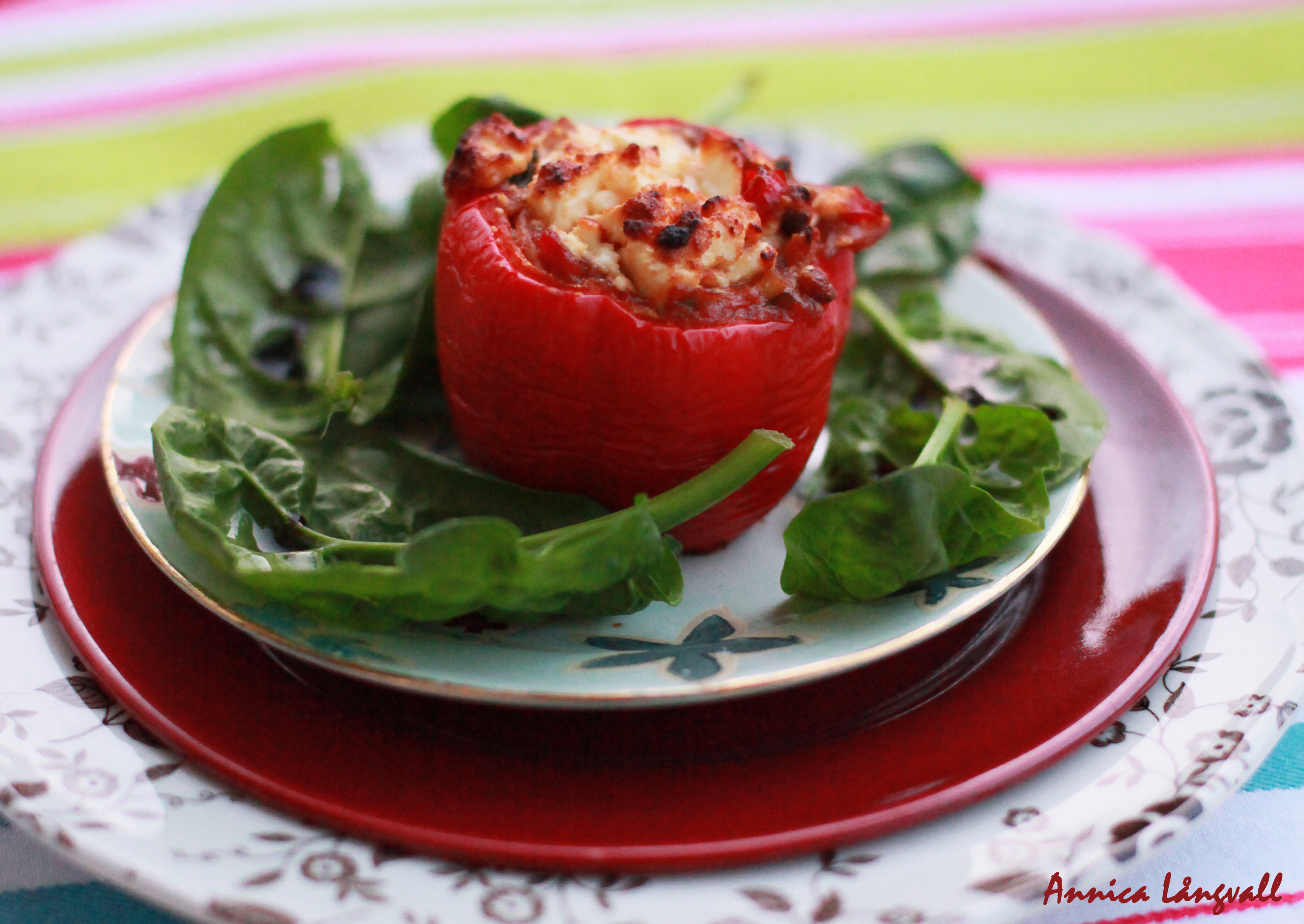 Vegetariska fyllda paprikor med bladspenat och feta (2-4 port)