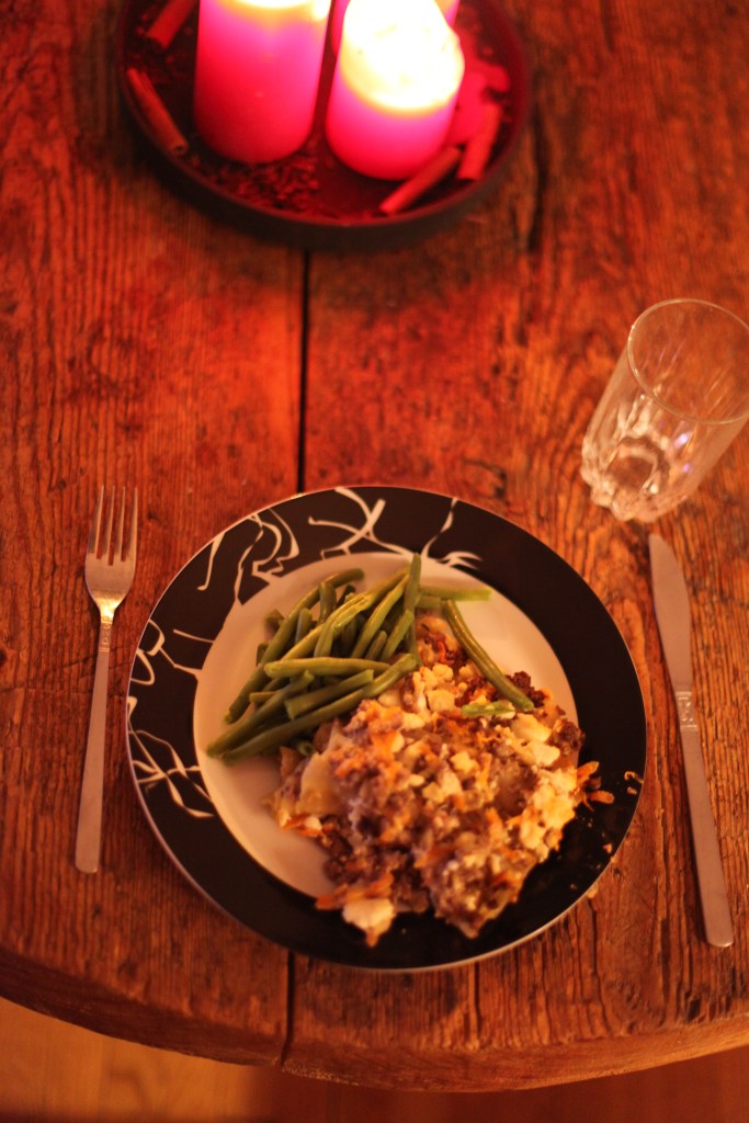 Idag gjorde jag en ny variant av lasagne med den vegetariska rotfruktslasagnen som grund, men med älgfärs och fetaost! Det blev otroligt gott, och eftersom man gör en enda röra att varva mellan lasagneplattorna istället för en färsröra och en bechamelsås så gick det ganska snabbt och enkelt.