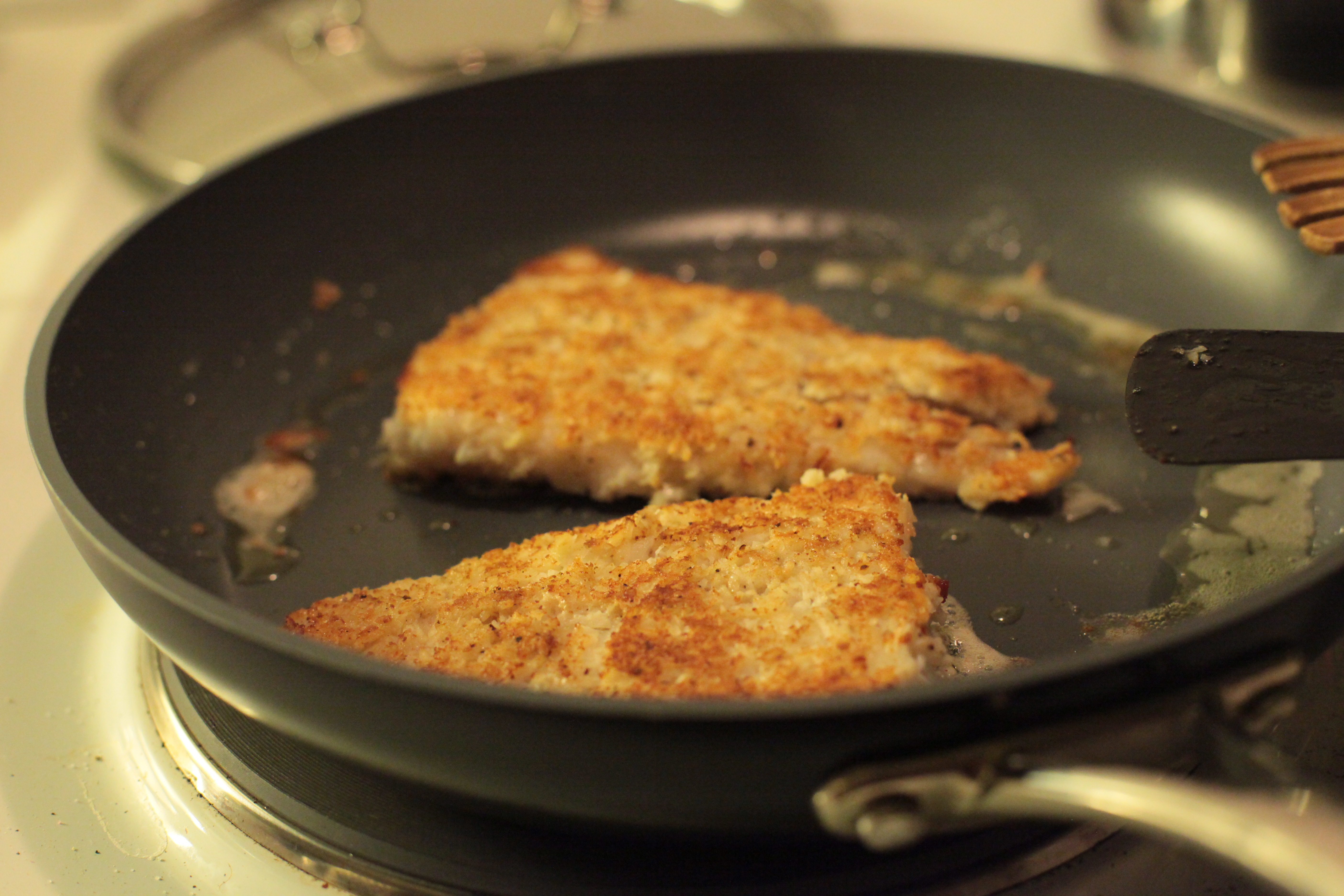 Den här fisken är lättlagad och har en spännande och exotisk smak utan att innehålla tusen ingredienser. Panerad fisk går ofta hem hos barn också. Panering i mat drar åt sig mer fett än om man steker fisk eller kött som det är, därför kan det vara bra att tänka på vilken typ av fett man steker i. Använd gärna flytande margarin eller olja. Rapsolja är billigt och har dessutom en riktigt bra fettsammansättning, men flytande margarin tycker jag passar lite bättre till att steka panerad fisk i. Vill man dra ned på fettet i sin kost bör man spara paneringen till lite färre men festligare tillfällen. Har man svårt att få in fisk i sin kost så kan ju just fiskdagen få bjuda på den lyxiga paneringen, eller hur?