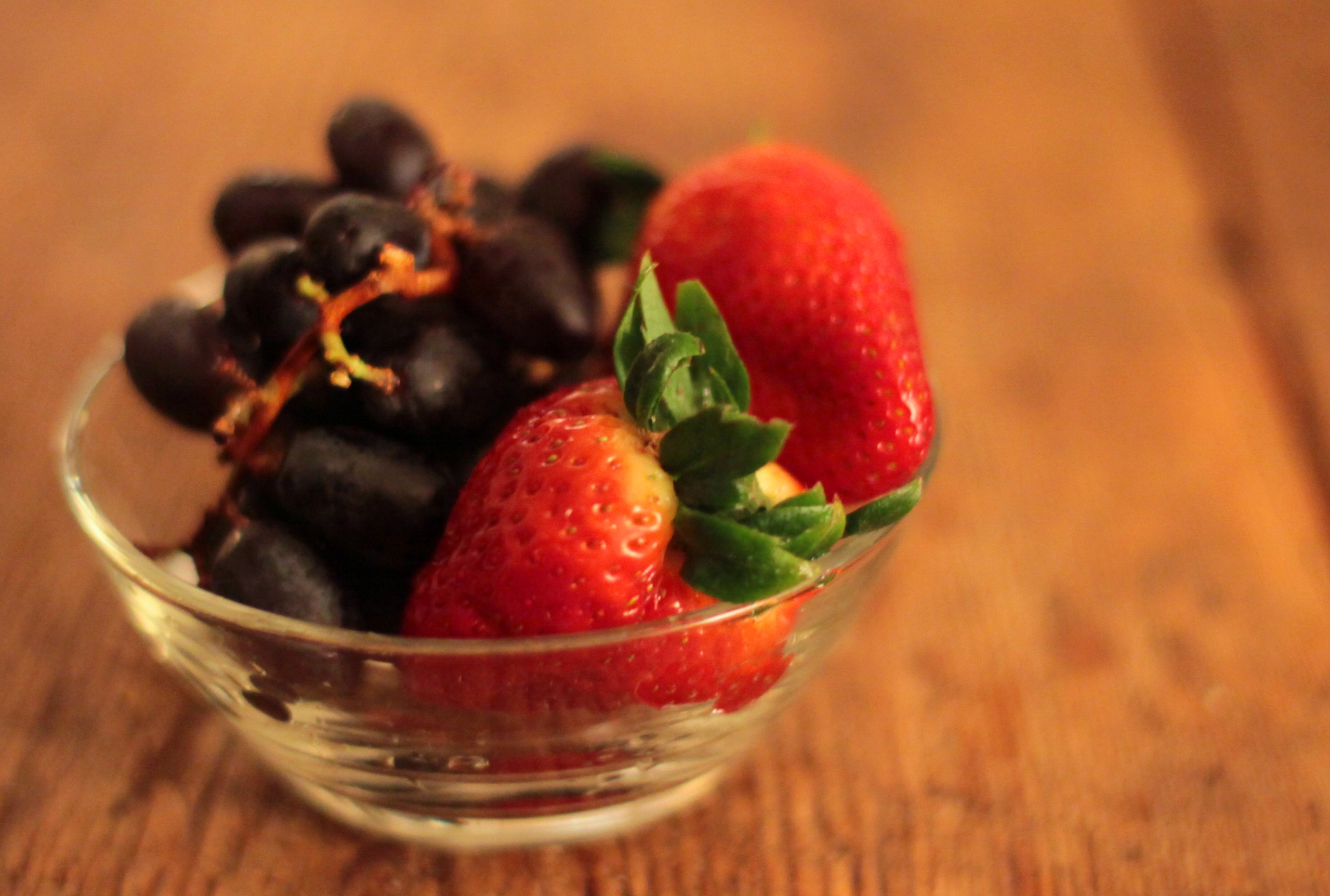 Jag har spenderat kvällen med mitt första kickboxningpass på flera år – helt underbart trots blåmärken och blåsor! Efter träningen dukade jag fram yoghurt med kvarg, flingor, och nu blir det kvällsnacks i form av något så lyxigt som jordgubbar och vindruvor. När man är lite småsugen så är det ett hett tips att skära lite frukt och bär i bitar och duka fram, ett perfekt sätt att få i sig lite mer frukt och samtidigt njuta av färglada godsaker.