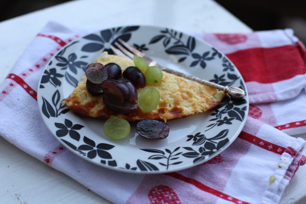 Här har ni mitt nya favoritmellanmål, eller min nya favoritefterrätt på vardagar: kesokaka med frukt eller bär, ett proteinrikt och väldigt retro mellanmål som landar någonstans mellan ostkaka och omelett.