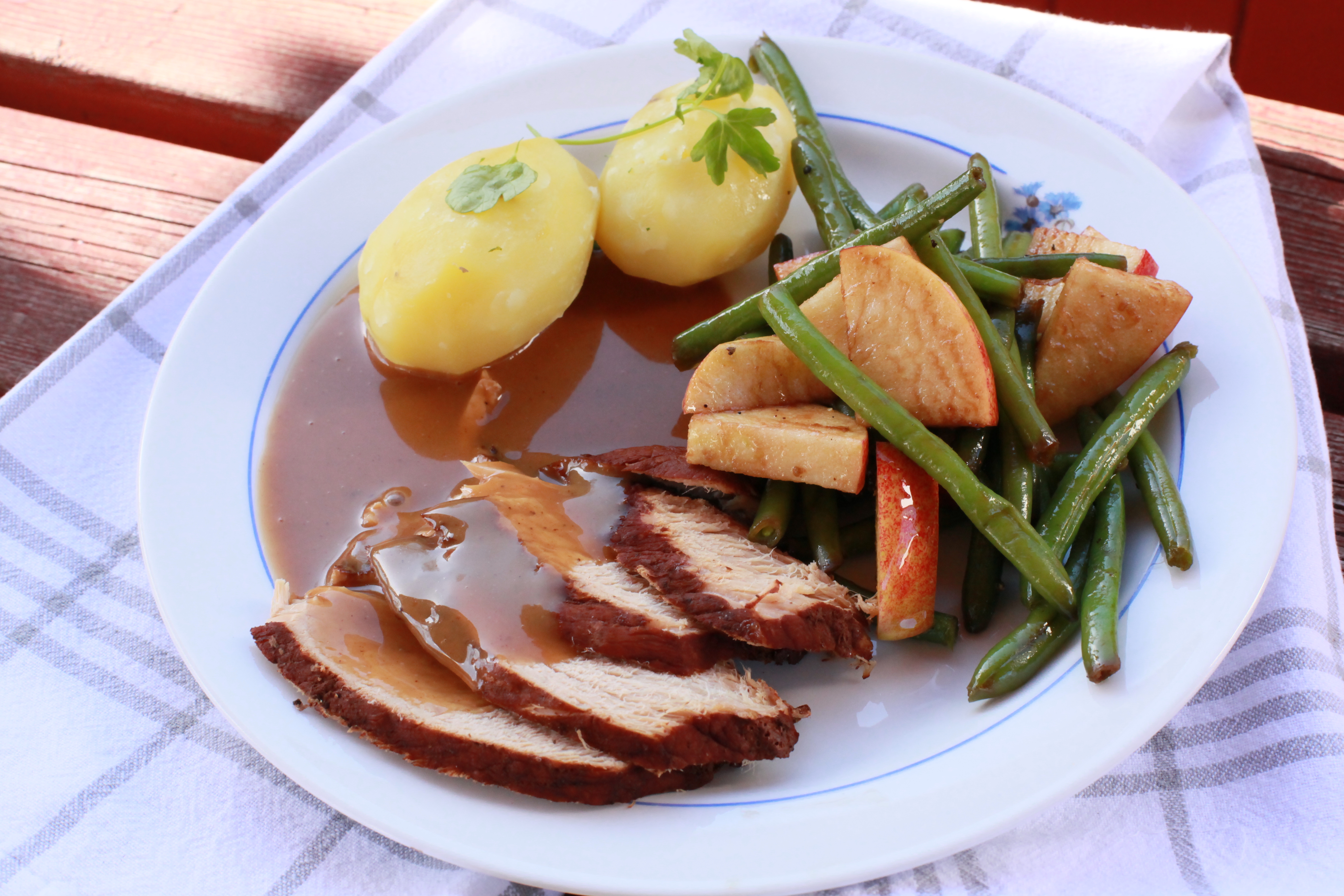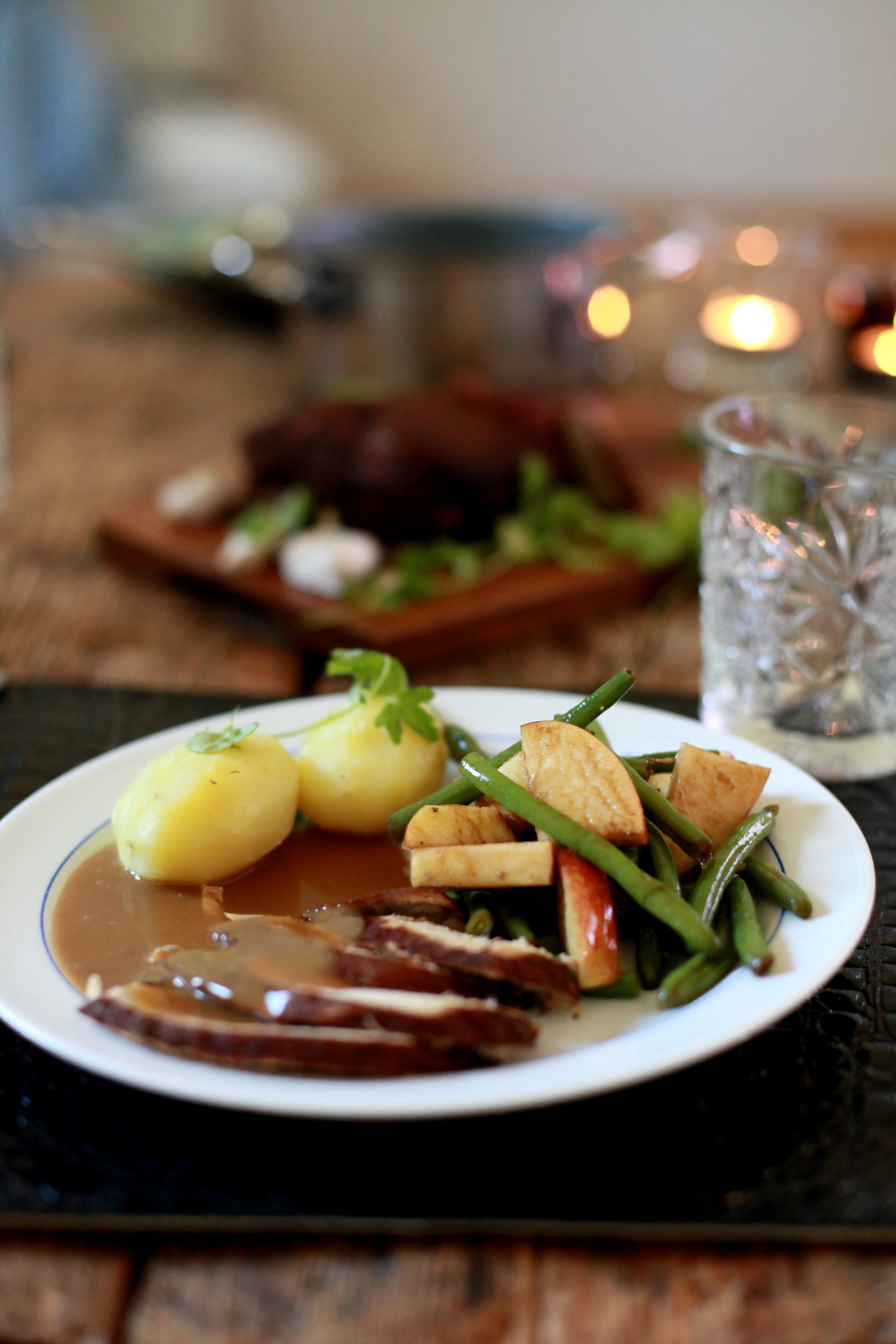Jag kan dock inte påstå att jag lyckades följa receptet. Jag hade för lite rödvin och hittade inga enbär, men det här nedan är ungefär vad som hamnade i grytorna och på tallrikarna idag. Håll till godo och låt er inspireras!