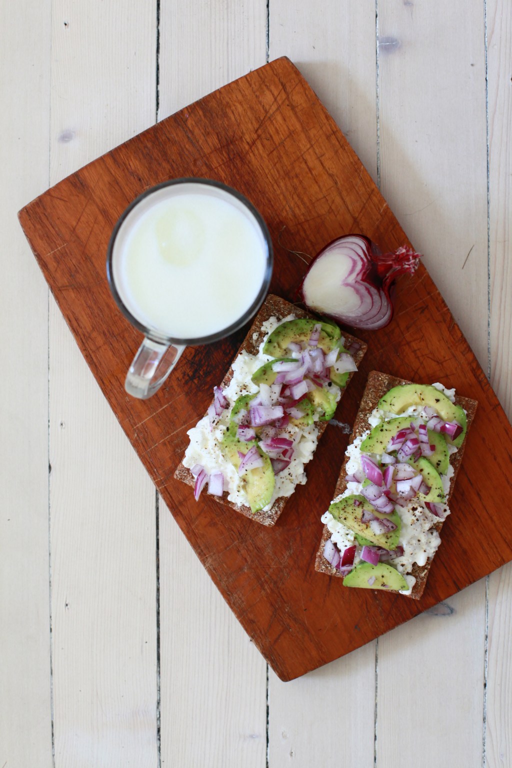 Toppa sportbröd med avokado, keso, finhackad eller tunt skivad rödlök och avsluta med lite svartpeppar och några saltkorn. Avnjut förslagsvis som frukost eller mellanmål. I den 27 grader varma sommaren som råder här idag fick det till och med duga som lunch till mig idag – varm mat var inte att tänka på!