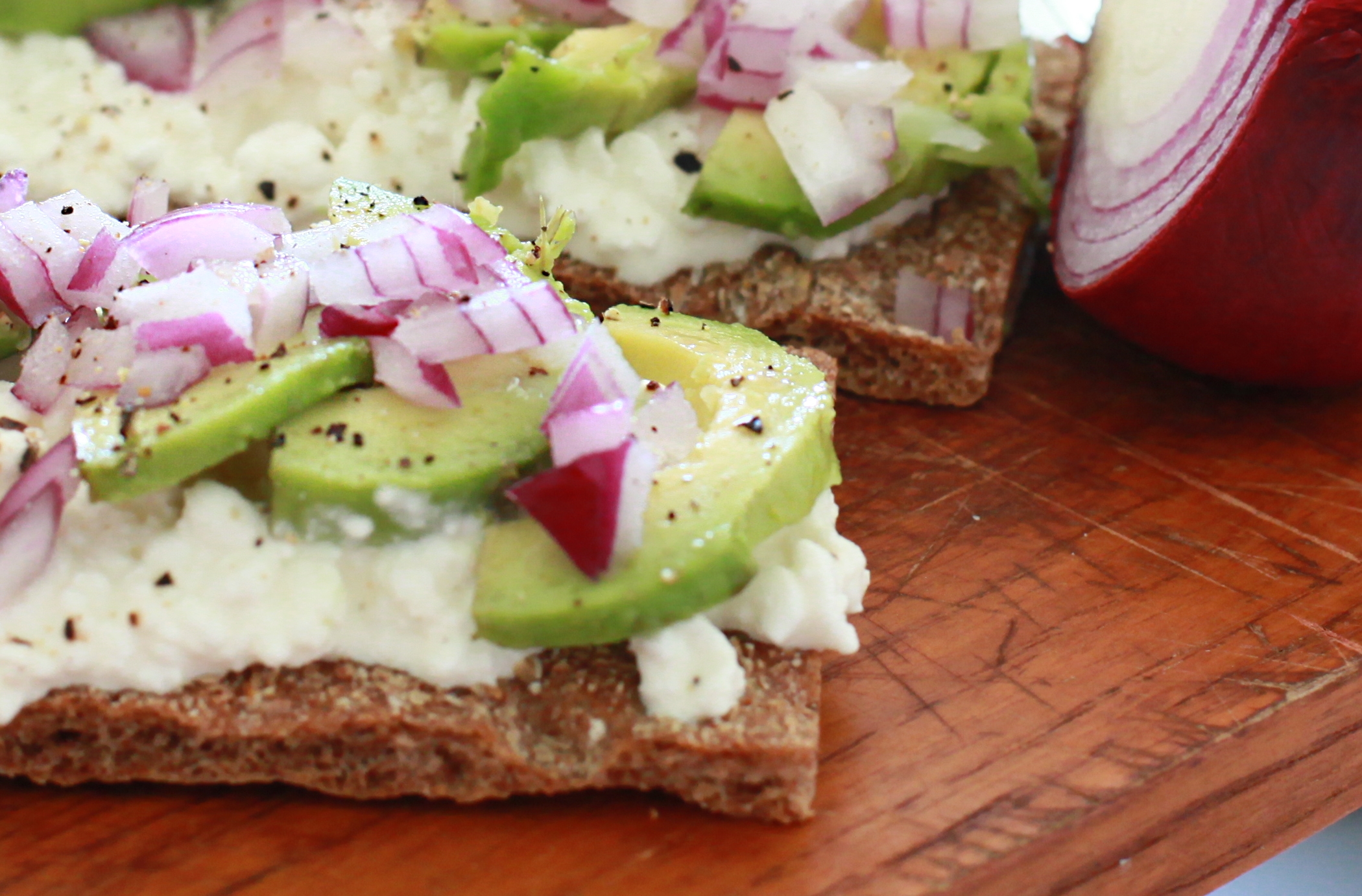 Mina damer och herrar och hennar, låt mig presentera världens i särsklass bästa macka. Lät det kaxigt nu? Jag kan förklara varför lite kaxighet är på sin plats – den här lilla mumsbiten har verkligen allt enligt mig. Finfint laktovegetariskt protein från keso, kanonbra fett från den underbara avokadon, smak och antioxidanter från allas vår älskade rödlök, och mättande, fiberrika kolhydrater god kvalitet i det hårda knäckebrödet.