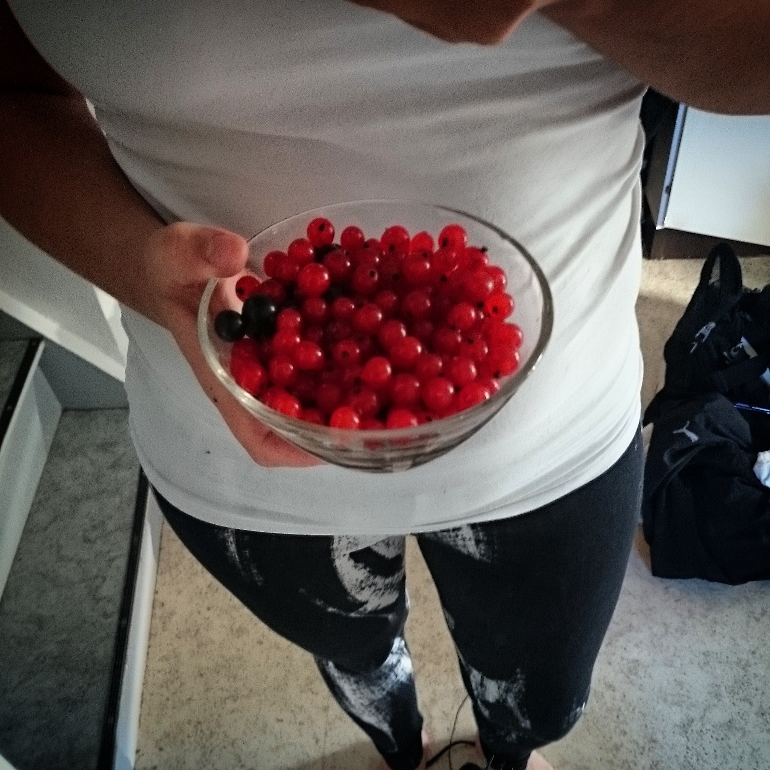Jag har, som jag skrev tidigare, nöjet att skörda lite smått och gott från min egen trädgård just nu. Vinbär åker ned i smoothien eller ovanpå yoghurt med müsli så gott som varje morgon, tillsammans med kvarg, lättmjölk och yoghurt och ibland någon annan frukt/bär, men något annat som är helt fantastiskt är att plantorna i växthuset har börjat ge frukt! Till middag har jag gått ut och hämtat gröna paprikor ett par gånger, och nu börjar även små gula tomater mogna. De flesta tomatplantor jag har kommer dock att ge bifftomater och de verkar kunna ta ett tag till på sig att mogna.