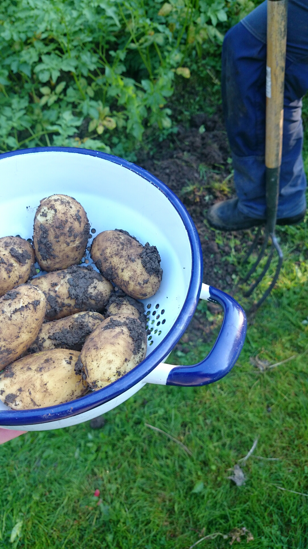 Och då har vi äntligen lyxen att kunna ta upp våra första potatisar. Helt fantastiska, vackra, goda små knölar.