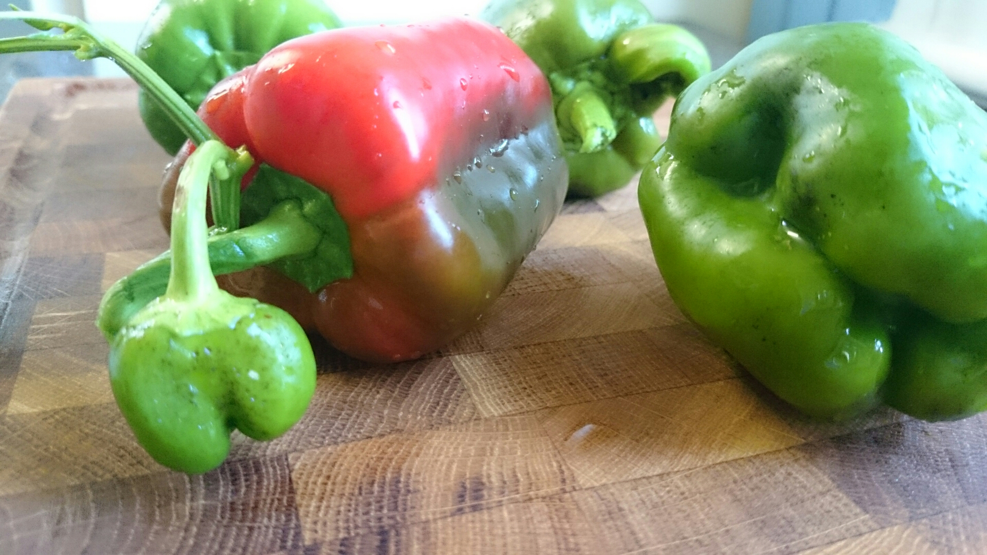 Hösten är här och nu börjar det bli kallt även i växthuset. Jag tror inte mina grönsaker kommer hinna bli riktigt mogna, men häromdagen fick jag njuta av en paprika som hunnit bli röd. De andra får avnjutas gröna! Tomaterna ska jag ta in så de får mogna inomhus i fönstret. Här får ni en snabb update på trädgårdsskörden!