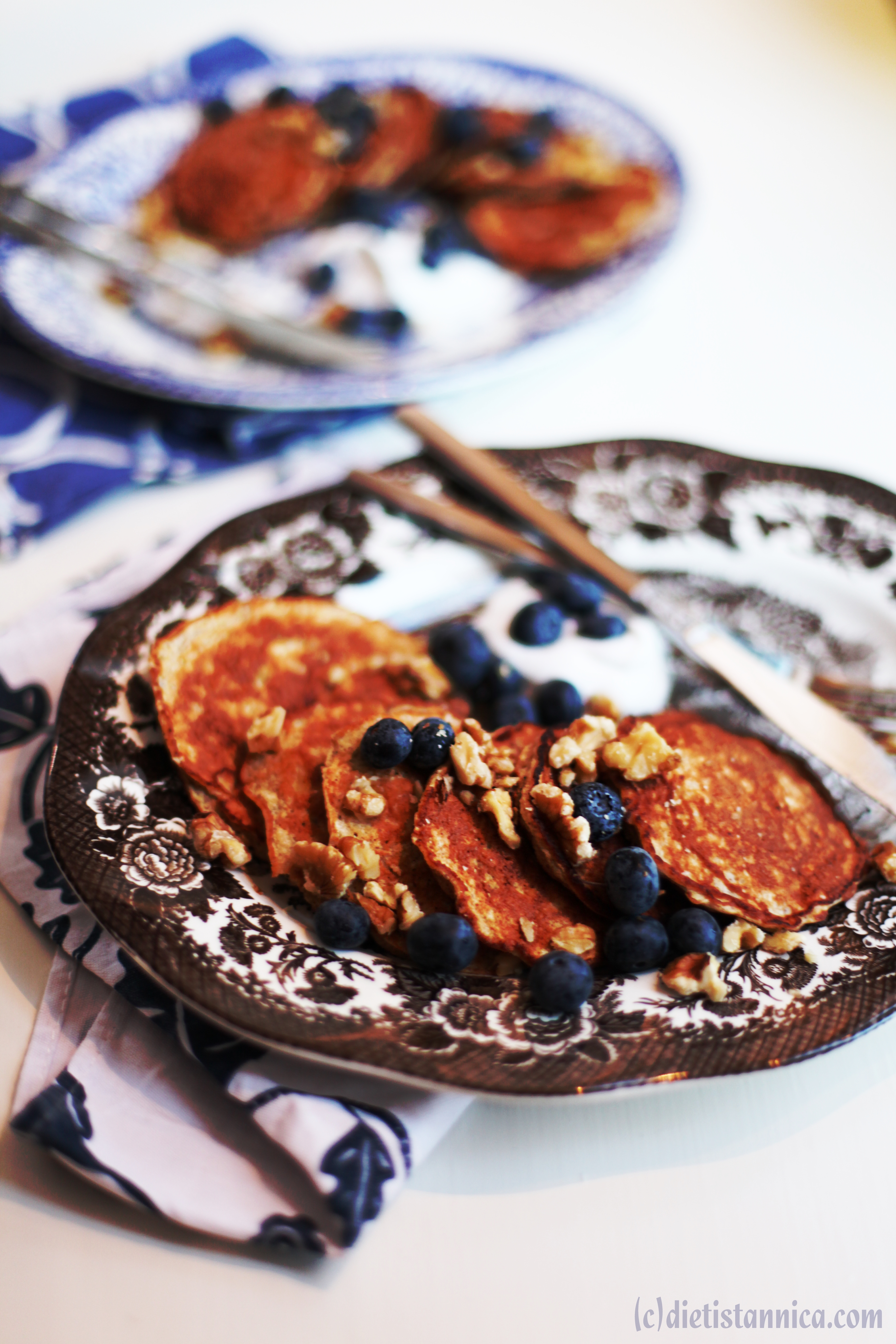 Jag har ju lagt ut ett recept tidigare som jag tycker är bra. När jag hälsade på min dietistkompis Jennifer och hennes familj härom veckan så bjöd hon på bananpannkakor till frukost och hon tillagade dem lite annorlunda än jag brukar, nämligen med hela havregryn istället för mixade – och det blev SÅ gott och saftigt så det har jag tagit till mig! Det är härligt att komma iväg ibland och få lite inspiration, jag har ju fördelen att ha två av mina närmaste vänner som yrkeskollegor (varav en du hittar här) så vi kan vara matnördiga tillsammans.