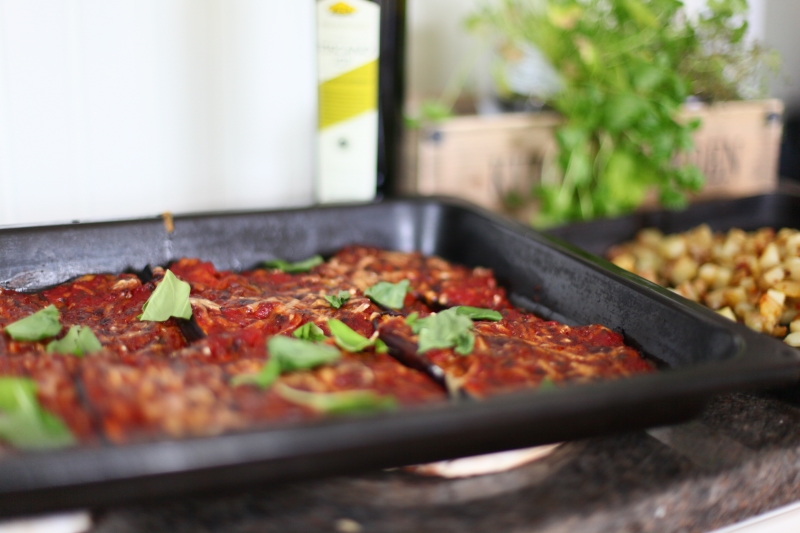 1. Kom ihåg att börja i tid. Innan man tillagar aubergine brukar man skära dem i skivor, salta skivorna och sedan låta saltet dra ur vätskan i ca en timme. Just den här rätter tar också sin tid i ugnen. Jag skulle dock säga att den här rätten går utmärkt att tillaga dagen före om man vill, den var minst lika god då.