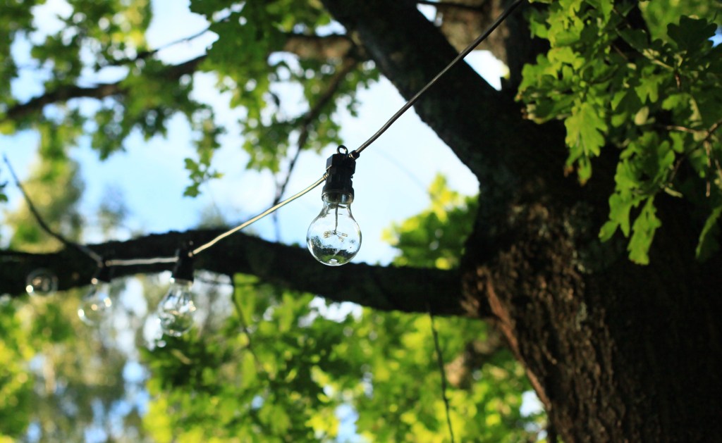 Under den stora eken har vi skapat ett litet paradis. En plats för reflektion med lampor som framträder i skymningen.