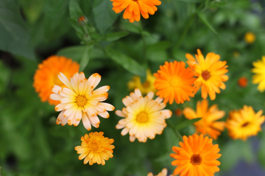 Att odla blommor ger mycket för ”själen” och bryter av vackert när det odlas tillsammans med grönsaker. Blommor fungerar också som dragare av pollinatörer – genom att erbjuda mat även till insekterna gör att de dras till trädgården vilket är positivt för den biologiska mångfalden men också för din skörd. Blommande växter drar också till sig nyttoinsekter som i sin tur är naturliga fiender till sånt som annars äter upp våra grönsaker, t ex bladlöss, kålmal och andra skadegörare. Vissa blommor används också i ekologiska trädgårdar för att avskräcka oönskade skadedjur. Förra året odlade jag till exempel tagetes som är en sådan växt som hindrar nematoder, underjordiska små rundmaskar, att få fäste. Starkt doftande växter som tagetes och ringblomma kan förvilla flygande skadedjur, som inte hittar fram till den åtråvärda växten. Flera av dessa växter kan också användas i maten. Förra året skördade jag massor av ringblommor och tagetes som jag torkade och nu använder till ört-te. Flera olika sorters växter blommar också rikligare när vi skördar från dem regelbundet. Att ringblomma är en sådan växt blev jag varse om förra året. Jag valde ringblomma eftersom det passade in i mitt tema på klosterväxter och medicinalväxter. I år behöver jag inte köpa några frön eftersom jag skördade egna frön i mängd och parti.